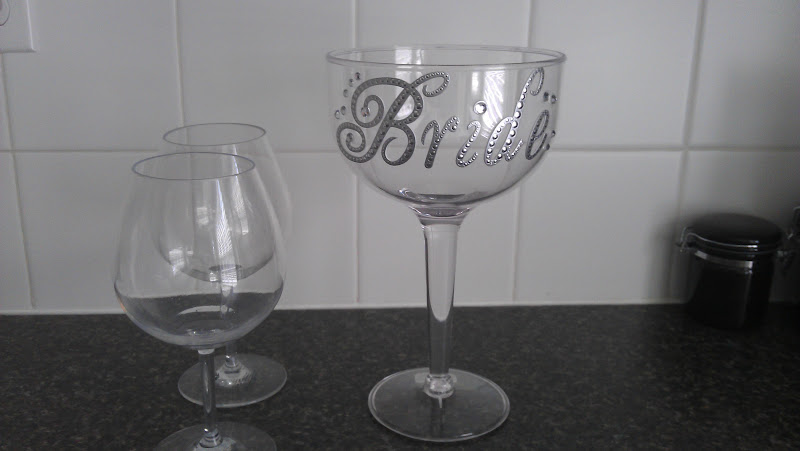 a HUGE plastic wine glass found at party city.